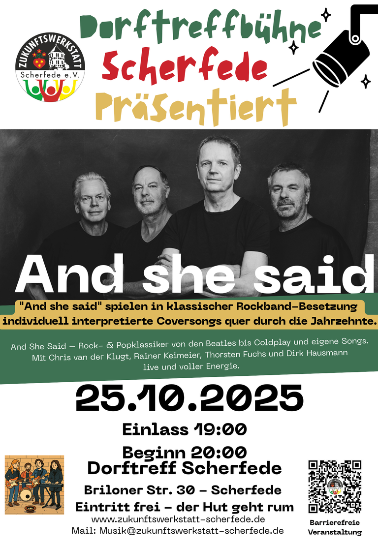Am Samstag, 25. Oktober 2025, ist die Gruppe bei uns im Dorftreff Scherfede zu Gast.